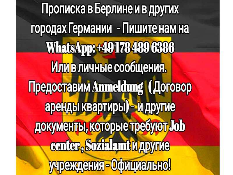 Прописка по всей Германии по доступным ценам! Можно без термина! Экспресс вариант в течение 12 часов!